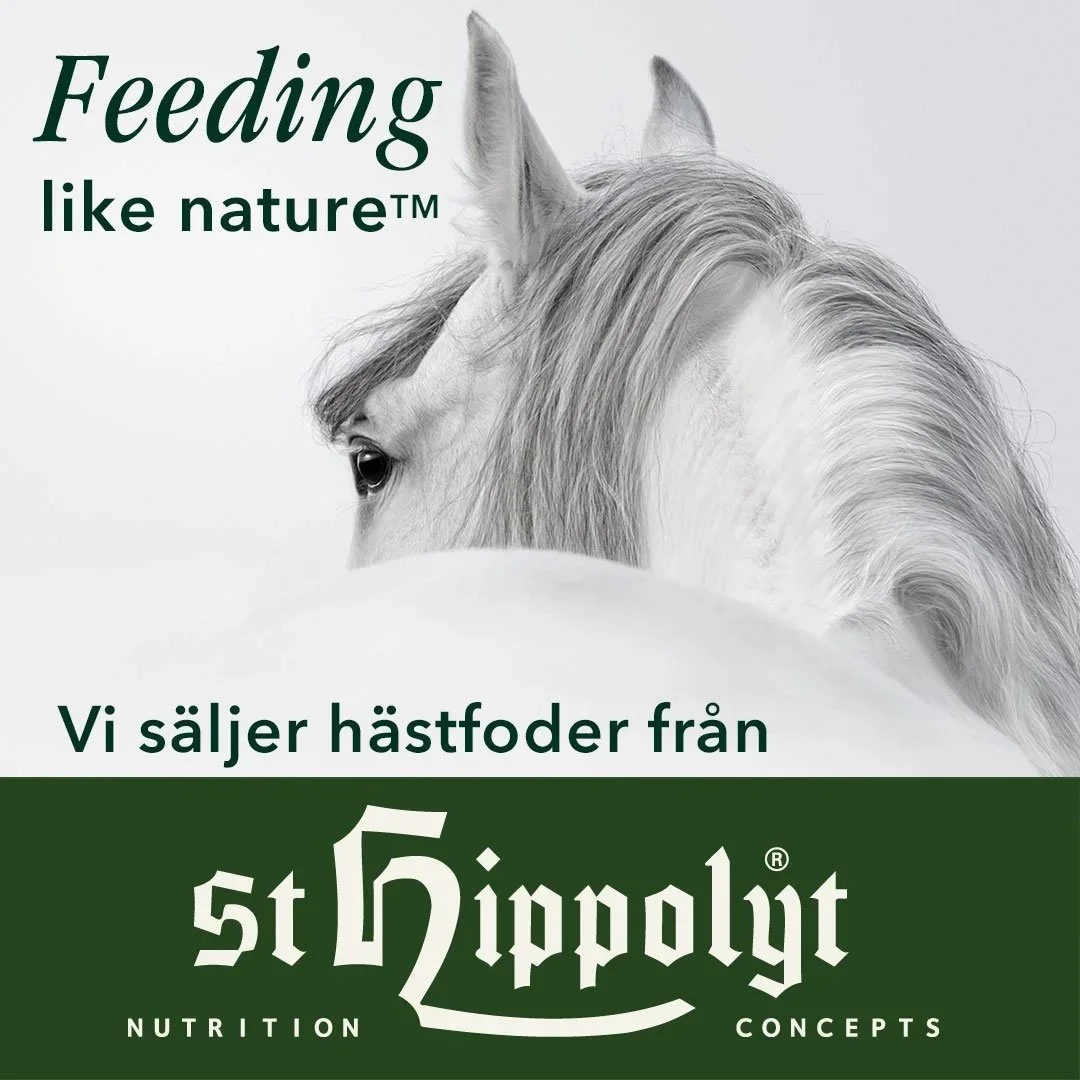 St Hippolyt är ett kvalitetsfoder som produceras i Tyskland. Fodret innehåller de allra bästa råvarorna för din häst. Vi har ett grundutbud av foder hemma och kan även beställa hem efter behov. Ring eller mejla så hjälper vi er. Vi är även behjälpliga med att räkna ut foderstat åt din häst.