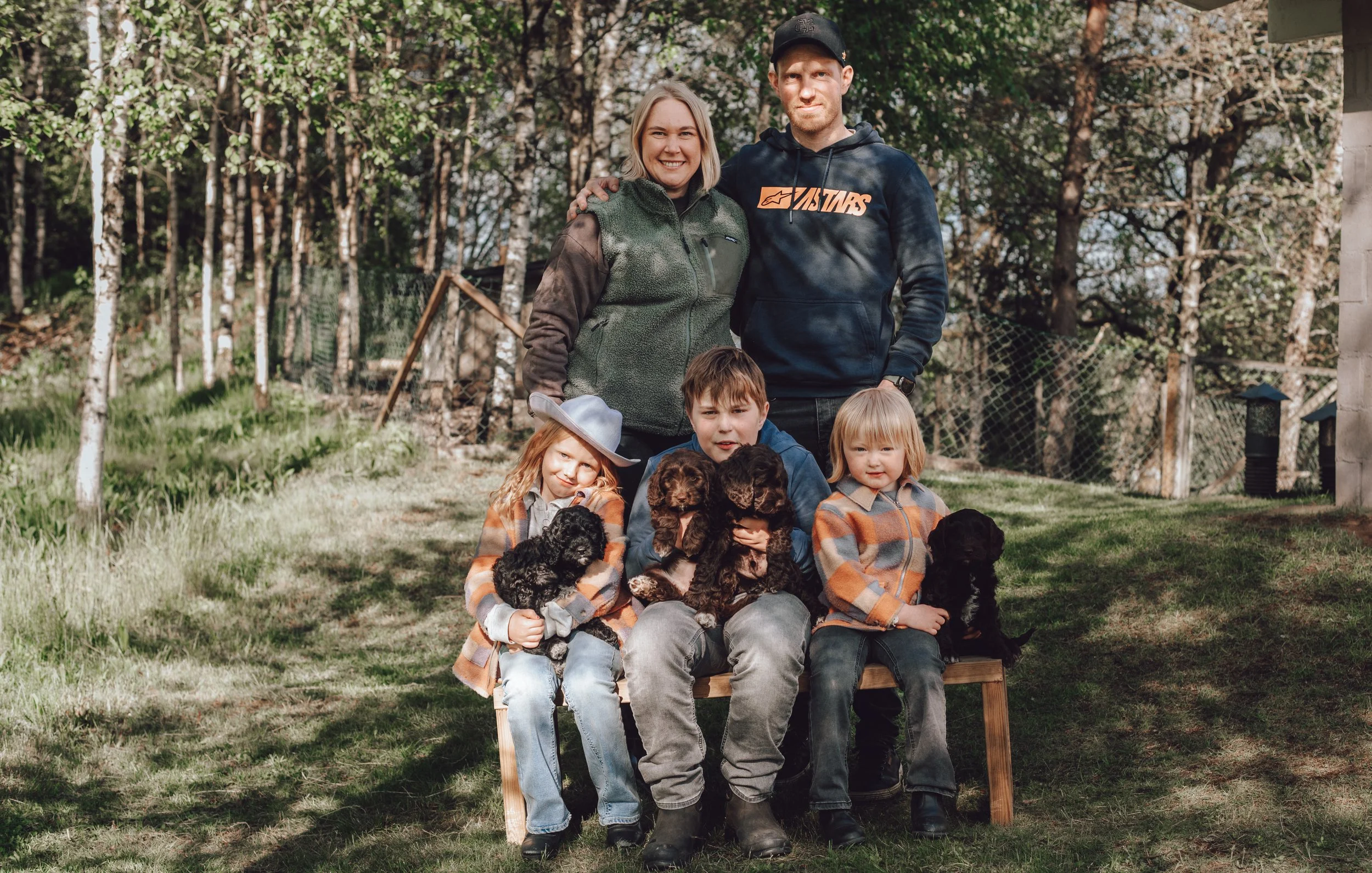Michael är snickare och har byggt och renoverat det mesta på gården. Emma är utbildad socionom och arbetar på gården med skötsel och uppfödning av våra hundar och hästar. Vi har tre barn tillsammans - Eddie, Freya och Elsa.